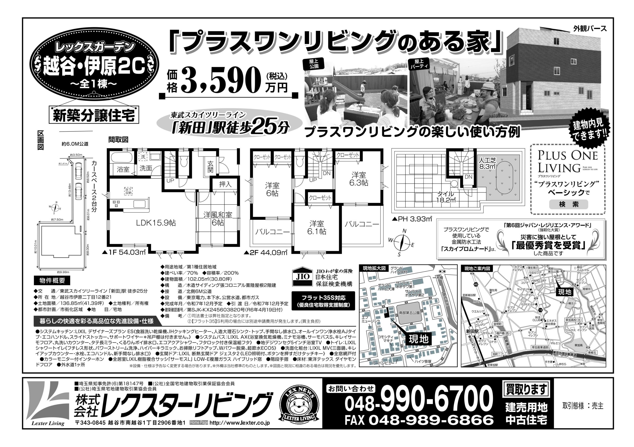 越谷・伊原2丁目 屋上付き新築住宅 物件概要